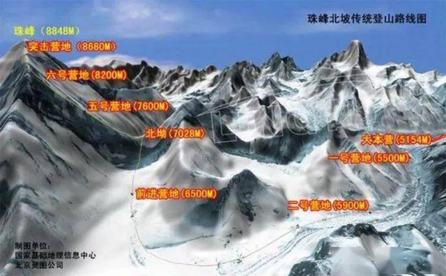 Traditional climbing route map of the north slope of Mount Everest @baidu